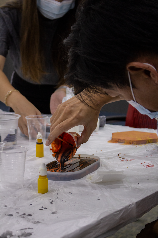 Not only that, almost all aspects of our workshop are customisable e.g. the shapes of your coaster, colours of coaster and colours of the marbling patterns. With the wide range of Colours selection and colour theory, you will be spoilt with choices. Let your creativity go wild and join us at our Marble Coaster Workshop.